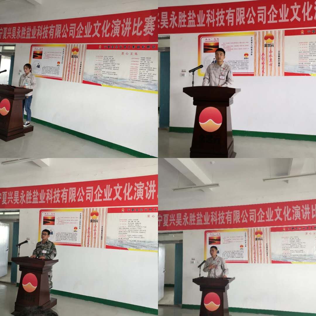 2019年5月30日,寧夏興昊永勝鹽業(yè)科技有限公司舉辦“提升職業(yè)化素養(yǎng)”主題演講比賽。鹽業(yè)公司總經(jīng)理尚繼榮、副經(jīng)理莊濤、綜合科科長張偉、安環(huán)生產(chǎn)科科長岳尚華及50余名員工代表參加。同時(shí),還特邀片區(qū)副總經(jīng)理馬建東、黨支部副書記王志杰出席活動(dòng)。