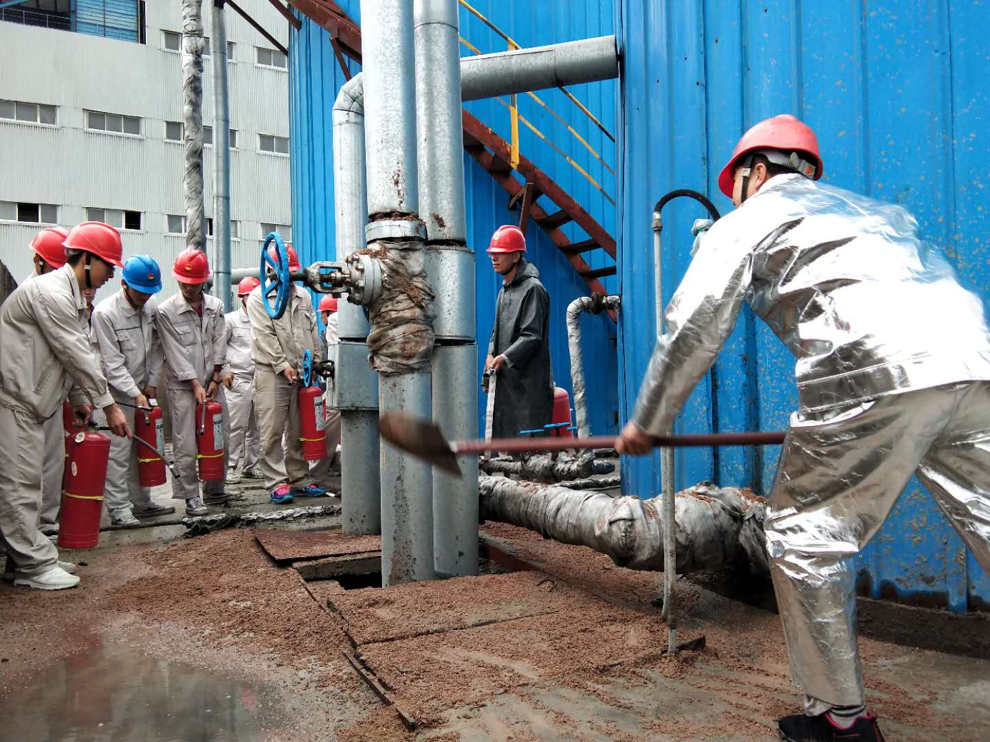 為提高公司各級(jí)人員事故防范和應(yīng)急保障能力,及時(shí)有效且迅速地處理火災(zāi)事故,避免或降低燃油庫(kù)區(qū)火災(zāi)事故可能造成的重大經(jīng)濟(jì)損失和影響,根據(jù)公司“安全生產(chǎn)月”活動(dòng)計(jì)劃,緊密圍繞“防風(fēng)險(xiǎn)、除隱患、遏事故”活動(dòng)主題,2019年6月27日下午15時(shí),寧夏興昊永勝鹽業(yè)科技有限公司組織開展了燃油庫(kù)區(qū)回油管路著火事故應(yīng)急演練。