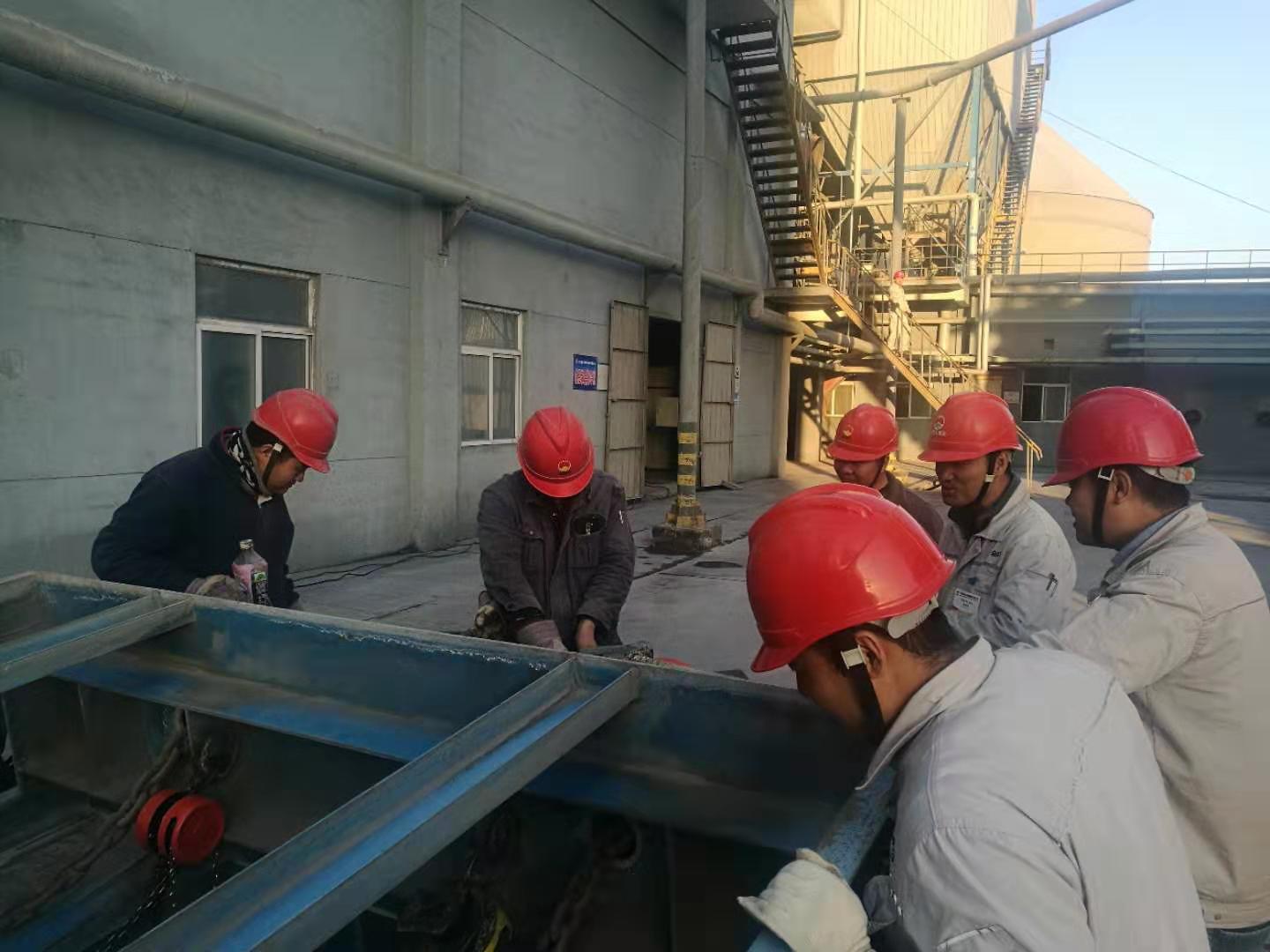 一、成品裝置長(zhǎng)黃勃強(qiáng)帶領(lǐng)維修工對(duì)均化庫(kù)底空氣斜槽技改,認(rèn)真辦理受限空間作業(yè)票證。指導(dǎo)維修人員計(jì)算材料,核對(duì)圖紙,然后利用簡(jiǎn)單的工具就地進(jìn)行比劃!