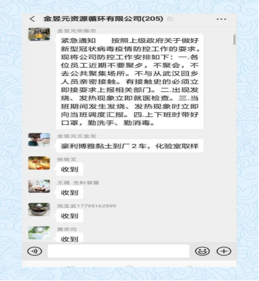 寧夏金昱元資源循環(huán)有限公司加強(qiáng)對(duì)春節(jié)期間接觸從湖北、武漢返鄉(xiāng)的人員進(jìn)行摸排、排查,加大員工群體的排查管控力度,做到每日防控,每日?qǐng)?bào)平安,登記外出員工動(dòng)態(tài),密切關(guān)注員工身體情況,引導(dǎo)廣大員工加強(qiáng)防范,切實(shí)增強(qiáng)自身防護(hù)能力。