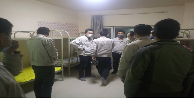 在宿舍,檢查留宿人員、進(jìn)行衛(wèi)生消毒等“疫情”防控工作。