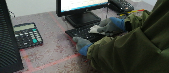 擦拭操作臺(tái)、門把手,及時(shí)進(jìn)行衛(wèi)生消毒