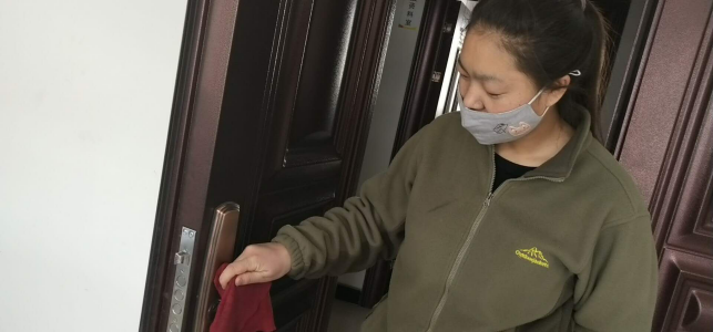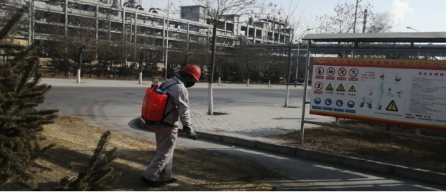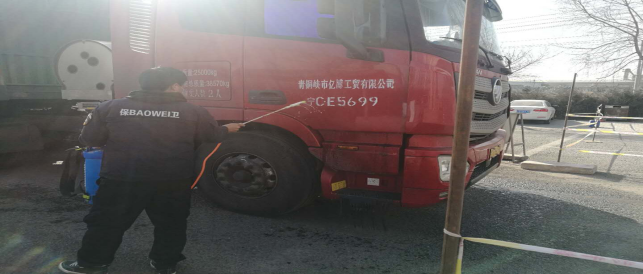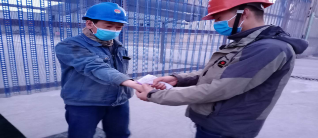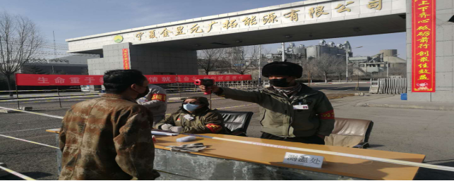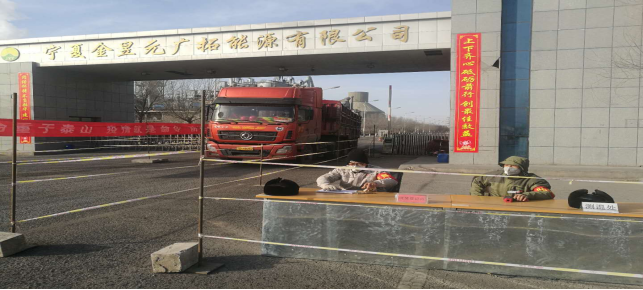 在公司北大門,他們對進出廠區(qū)職工及車輛登記,嚴格“疫情”防控工作。