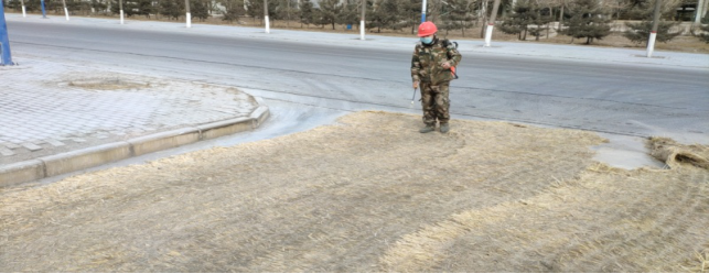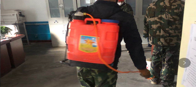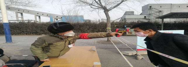在園區(qū)南門,面對寒風(fēng),他們從容不迫,是責(zé)任,更是忠誠的奉獻。當(dāng)日截止下午17時整,他們檢測、消毒、登記車輛53輛,人員53人,車輛正常,人員體溫均在正常范圍。
