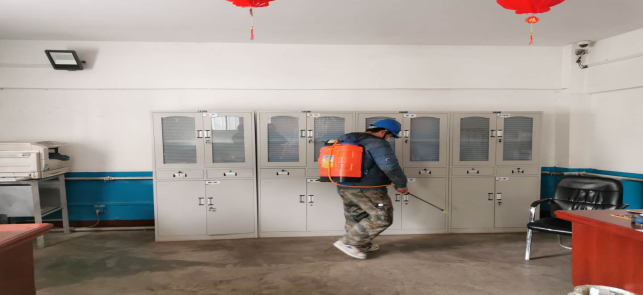 對(duì)廠區(qū)衛(wèi)生間消毒。