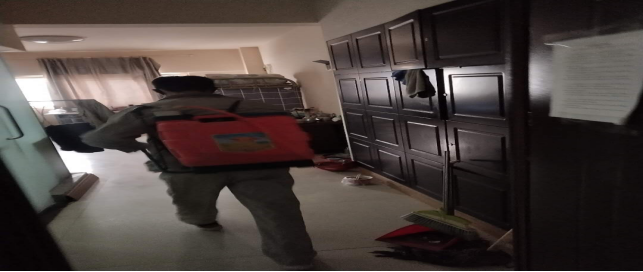 擦拭操作臺(tái)、門把手,工作的有條不紊。