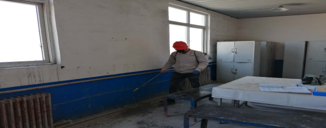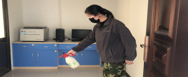擦拭操作臺(tái)、門把手,工作的有條不紊。