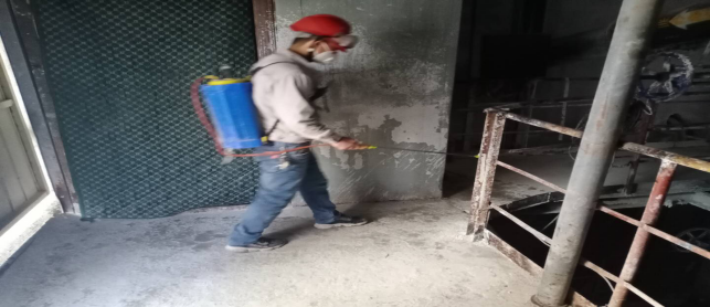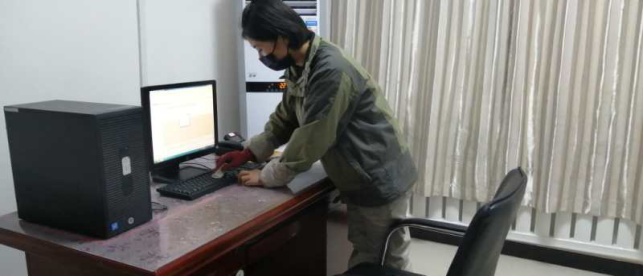 在崗位辦公室消毒。
