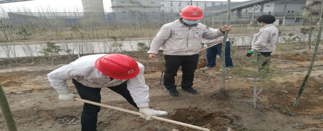 人勤春來早,植樹正當(dāng)時。現(xiàn)場,處處是忙碌的身影,個個熱情洋溢、干勁十足,有的拿鐵鍬,有的運樹苗,你追我趕,比干勁、比進度,各個環(huán)節(jié)銜接有序,樣樣做得認真到位,個個忙得滿頭大汗。到處都是忙碌的身影和勞動的歡聲笑語……一番熱火朝天的勞動后,一棵棵新栽種的樹苗亭亭玉立,在明媚的春光中展現(xiàn)勃勃生機,為初春的廠區(qū)增添絲絲活力。一天忙碌后,1000余株樹苗在此“安家落戶”。