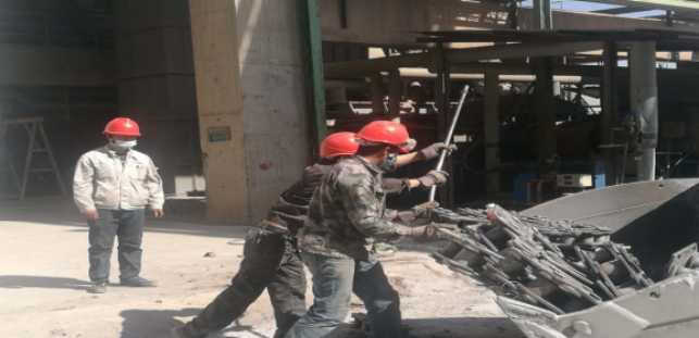 (5)破碎機內(nèi)部襯板檢查并緊固螺栓,破碎機內(nèi)雜物清理(未完成);