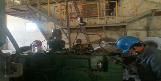 (4)烘干破減速機齒輪及軸承檢查,更換油封,聯(lián)軸器找正(未完成);