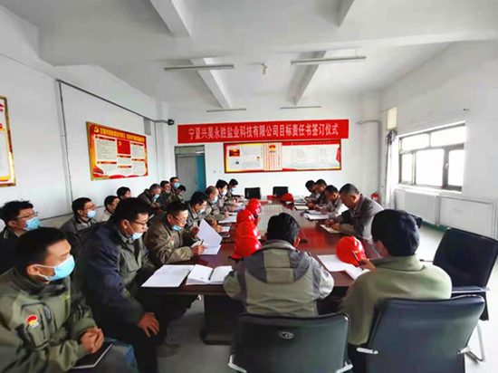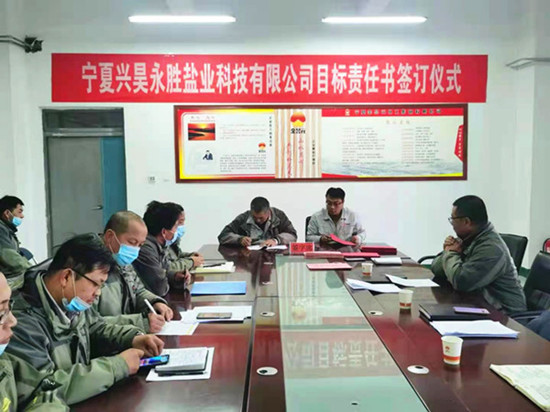 2021 年 1 月 7 日 15:30,寧夏興昊永勝鹽業(yè)科技有限公司召開了2021年首次安委會擴大會議暨安全生產(chǎn)目標責任書簽訂儀式。會議由公司總經(jīng)理主持,公司安委會全體成員及技術員以上人員參加了本次會議。