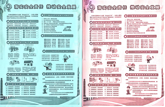 宣傳活動(dòng)周。通過(guò)現(xiàn)場(chǎng)懸掛“安全生產(chǎn)月”相關(guān)內(nèi)容的橫幅,張貼標(biāo)語(yǔ)和宣傳畫(huà),設(shè)置公共宣傳欄,組織員工觀看警示教育視頻,營(yíng)造"安全生產(chǎn)月"活動(dòng)氛圍。緊扣 “落實(shí)安全責(zé)任,推動(dòng)安全發(fā)展”活動(dòng)主題向大家發(fā)放了宣傳安全生產(chǎn)政策法規(guī)、防災(zāi)減災(zāi)宣傳單;現(xiàn)場(chǎng)講解安全科普常識(shí)、機(jī)械傷害知識(shí)及應(yīng)急處置技巧,增強(qiáng)大家的安全生產(chǎn)意識(shí),營(yíng)造了濃烈的安全生產(chǎn)氛圍。此次安全生產(chǎn)月共計(jì)發(fā)放宣傳資料1100余份,懸掛宣傳橫幅2條,組織員工觀看警示教育視頻8場(chǎng)次,鼓勵(lì)員工參加漫畫(huà)制作、征文比賽等相關(guān)活動(dòng)。通過(guò)此項(xiàng)活動(dòng),進(jìn)一步強(qiáng)化廣大員工對(duì)“紅線意識(shí)”、“底線思維”、“安全發(fā)展理念”等安全生產(chǎn)重要論述的再學(xué)習(xí)和再領(lǐng)會(huì)。