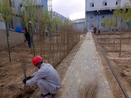 連日來,經(jīng)過一番番熱火朝天的勞動后,近1000棵楊柳樹、絲棉樹,一棵棵新栽、補栽的樹苗亭亭玉立,在明媚的春光中展現(xiàn)勃勃生機,為新春的廠區(qū)增添絲絲活力。