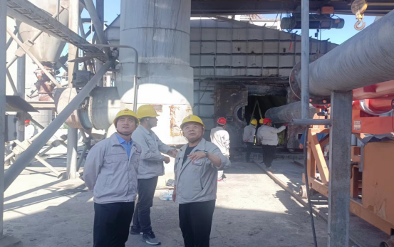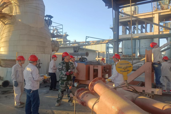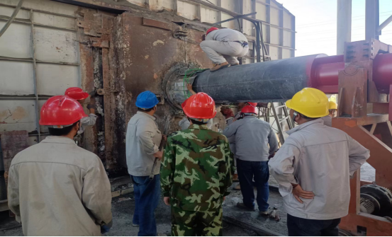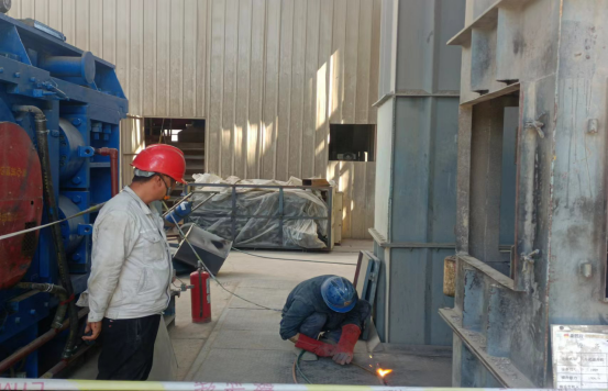 最繁忙、最艱苦的時段,從上午6:00分至下午17:20分,他們頂酷暑堅守在挖補窯磚、更換噴煤管的一線現(xiàn)場。烈日下,有的實施清理挖補窯磚、有的丈量計算、有的指揮進(jìn)行吊裝、有的進(jìn)行切割、焊接……