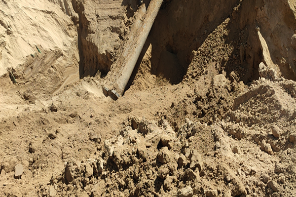 8月24日晚上22時(shí)30分,鹽業(yè)公司礦部至園區(qū)淡水流量下降,調(diào)度室及時(shí)將情況匯報(bào)給相關(guān)領(lǐng)導(dǎo),并安排采輸鹵裝置和鹽硝裝置分段巡查淡水管道。經(jīng)巡查發(fā)現(xiàn),因連續(xù)降雨天氣,淡水管道水泥西門深溝處因土壤下陷導(dǎo)致管道連接處鋼襯法蘭呲漏。