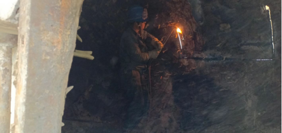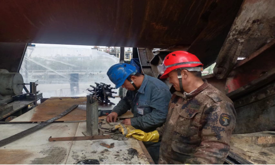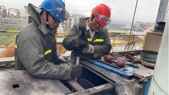 聽,現(xiàn)場(chǎng)鐵錘叮當(dāng),看焊花四濺,一幕幕忙碌的身影,無(wú)不令人感動(dòng)不已......剛順著樓梯趴下,又要順著樓梯爬上,總經(jīng)理吳紅衛(wèi)同志既是現(xiàn)場(chǎng)的指揮員、進(jìn)度的監(jiān)督員,又是現(xiàn)場(chǎng)的協(xié)調(diào)員,哪里需要怎樣干,他便第一時(shí)間提出自己的見解。映入眼簾的是他總是第一時(shí)間到達(dá)現(xiàn)場(chǎng),最后一個(gè)離開,一身勞保衣服一天下來(lái)總要背著一層土。正是這種帶動(dòng),全體維修人為了不窩工,不影響進(jìn)度,午飯總是簡(jiǎn)單的填飽肚子繼續(xù)干,個(gè)個(gè)干勁十足,衣服早已被油污和灰塵、汗水摻雜浸濕,黑乎乎的臉蛋也分不清誰(shuí)是誰(shuí)。