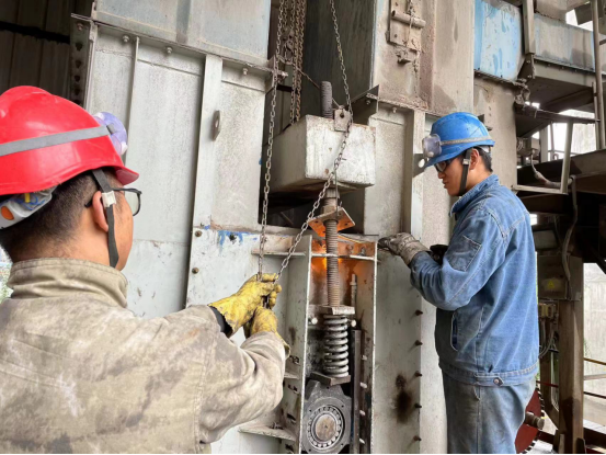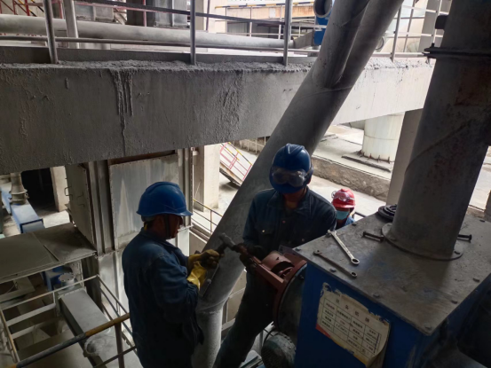 安裝技術要求高、安全風險大的項目,總經理吳紅衛(wèi)同志牽頭組織召開碰頭會,拿出技術方案,確保安裝精度、密封等滿足要求。特別是回轉窯大齒圈、烘干破旋風筒補焊、窯頭電袋收塵器檢查、預熱器更換掛片、生料磨輥壓機堆焊等檢修項目,牽頭組織風險設別,確保安全受控。對于檢修周期長及環(huán)境溫度要求高的檢修項目(工藝耐火磚及澆注料),合理安排施工時間,倒排施工節(jié)點時間,按計劃節(jié)點要求完成檢修任務。
