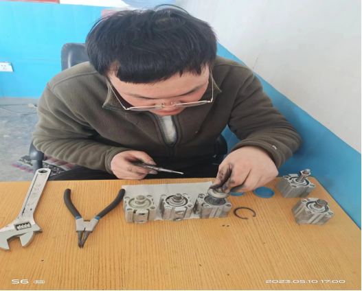 就拿水泥包裝機的小氣缸來說,它的作用就是控制包裝嘴在完成水泥包裝以后能順利的將水泥袋從包裝嘴上掉落!它就是典型的易損件,因為在水泥包裝現(xiàn)場,有一部分的灰塵是收塵器收不掉的,而包裝機屬于經(jīng)常運轉設備,時間久了,小氣缸由于暴露在灰塵中,會有一部分灰塵通過電磁閥連接的氣道而進入小氣缸內(nèi)部,造成內(nèi)部活動件的卡死,如果活動件卡死不動作,小氣缸就會壞掉,因此需要我們經(jīng)常維護保養(yǎng)和更換!近期,班組人員積極響應公司的廢舊利用理念,將一些不好用和損壞的小氣缸收集一起,進行拆卸清理,重新再組裝,經(jīng)過反復的試驗,變成小氣缸的備件,這樣的一個小小舉動,其實為公司節(jié)約了一小部分成本,如果長期這樣,大家一塊行動起來,每年為公司節(jié)約的成本是顯著的,也是讓人內(nèi)心激動的。