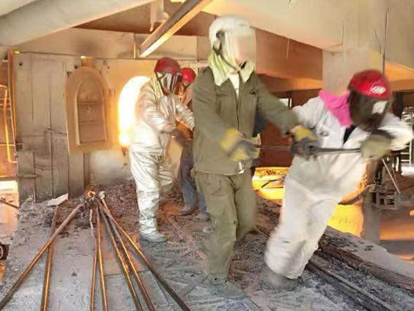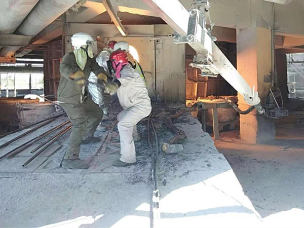 無論是嚴(yán)冬還是酷暑,走進(jìn)資源再生電石出爐現(xiàn)場,就能看見這么一群“全副武裝”的職工,身著隔熱服,頭裹防高溫面罩,手戴著“手燜子”,腳著厚勞保;他們同心協(xié)力,干勁十足得揮舞著手中的鋼釬,鋼釬在爐眼里來回穿梭,將近2000攝氏度高溫的電石緩緩流入電石鍋,這一群人就是電石生產(chǎn)中最可親可愛的“出爐工”。