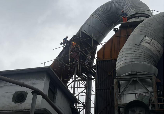 不遠處,檢修人員正在拆卸提升機料斗。他們熟練地操作著各種工具,小心翼翼地將料斗從提升機上拆卸下來。盡管已是金秋時節(jié),他們的臉頰上仍滲出了汗珠。各種工具的敲擊聲、警示語音聲以及指揮口哨聲交織在一起,奏響了一曲獨特的“檢修交響曲”。身著藍色的工裝、頭戴安全帽的職工們在龐大的設備間穿梭,他們的眼神中透露出專注與堅毅。