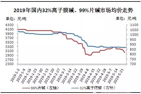 圖1 2019年國內(nèi)燒堿市場價(jià)格走勢