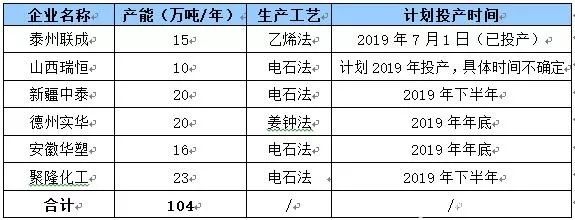 表2 2019年下半年P(guān)VC企業(yè)擴(kuò)能計劃