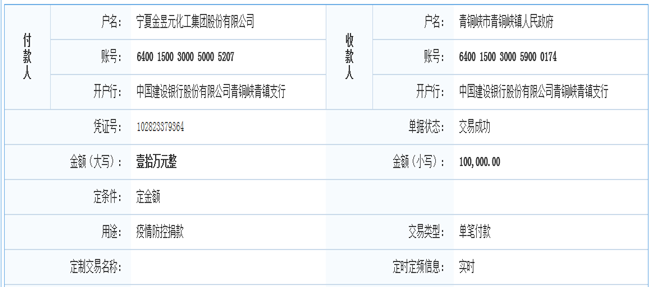盡管新冠病毒仍在肆虐,但病毒無(wú)情,人間有愛(ài)。集團(tuán)公司履行社會(huì)職責(zé),踐行使命與擔(dān)當(dāng),2月16日,分別向邵崗鎮(zhèn)政府、青銅峽鎮(zhèn)政府捐贈(zèng)10萬(wàn)元和價(jià)值1萬(wàn)元物資。