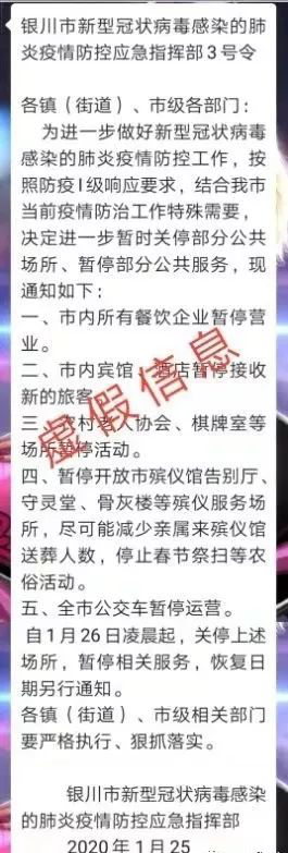 1月25日,秦某芳(女,70歲,銀川市興慶區(qū)居民)在一微信群內發(fā)布“銀川市新型冠狀病毒感染的肺炎疫情防控應急指揮部3號令”的虛假消息,造成不良影響,興慶區(qū)公安分局已對秦某芳進行批評教育。