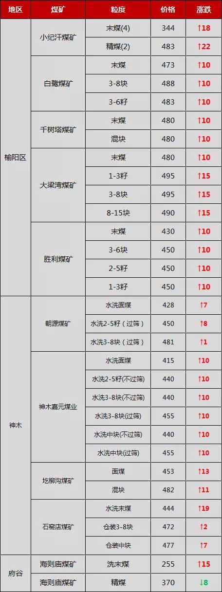 近日,榆林煤礦地銷價持續(xù)上漲,主要因為大型礦井都以保鐵路發(fā)運為主,地銷量非常少,所以許多地銷客戶只能從小型礦井拉運,助推煤價上漲。 比如,目前榆陽區(qū)小紀汗煤礦、杭來灣煤礦、榆樹灣煤礦、金雞灘煤礦地銷量非常少,所以榆陽區(qū)其他小礦持續(xù)上調(diào)價格。 最新調(diào)價表: