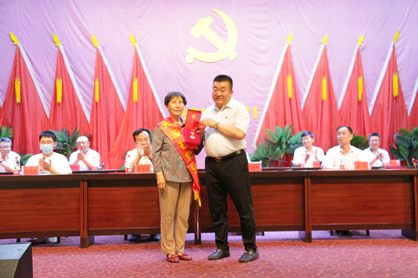 集團(tuán)公司董事長(zhǎng)代良云為具有50年黨齡的老黨員頒發(fā)獎(jiǎng)?wù),感謝她們充分發(fā)揮黨員模范帶頭作用,幾十年如一日對(duì)企業(yè)做出無私的奉獻(xiàn)。