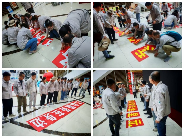 在拓展訓(xùn)練中,各組成員周密安排,明確分工,高效快捷地進(jìn)行拼字。在激烈的角逐中,助威聲、喝彩聲響成一片。當(dāng)“工會(huì)服務(wù)在身邊,我們愛您金昱元”十四個(gè)大字整齊拼成后,大家喜笑顏開、熱烈歡呼,對(duì)工會(huì)組織的感恩之情和對(duì)企業(yè)的自豪感與榮譽(yù)感油然而生。