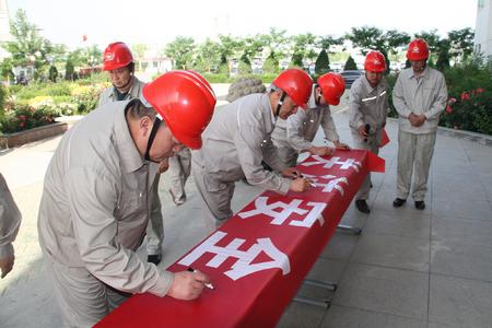 在安全宣誓儀式上,員工們著裝整齊劃一,頭戴安全帽,聲音鏗鏘有力,展現(xiàn)了公司員工“增強(qiáng)安全紅線意識(shí),嚴(yán)格落實(shí)安全生產(chǎn)責(zé)任,強(qiáng)化監(jiān)督和防范措施”的信心和決心。公司董事長代良云率先垂范,帶領(lǐng)干部職工在主題旗上鄭重簽名,體現(xiàn)了干部職工對(duì)本職工作的安全承諾,安全有我,有我安全,做“安全合格員工”。